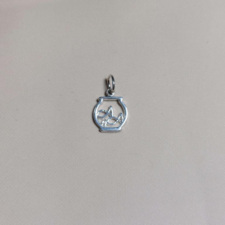 Pingente aquário com peixe, tam 1,0 x 1,1 cm, prata925