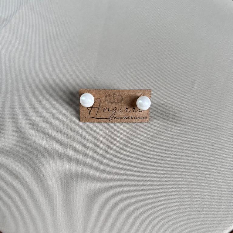 Brinco perola sintética, tam 12, tarraxa, prata925