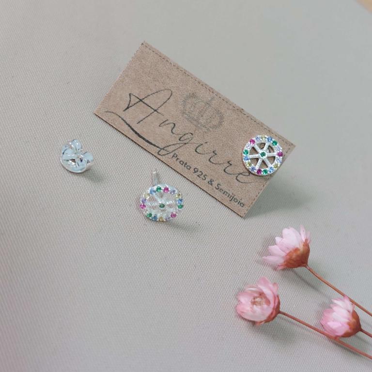 Brinco olho de tigre, redondo, pendulo, tarraxa, prata925