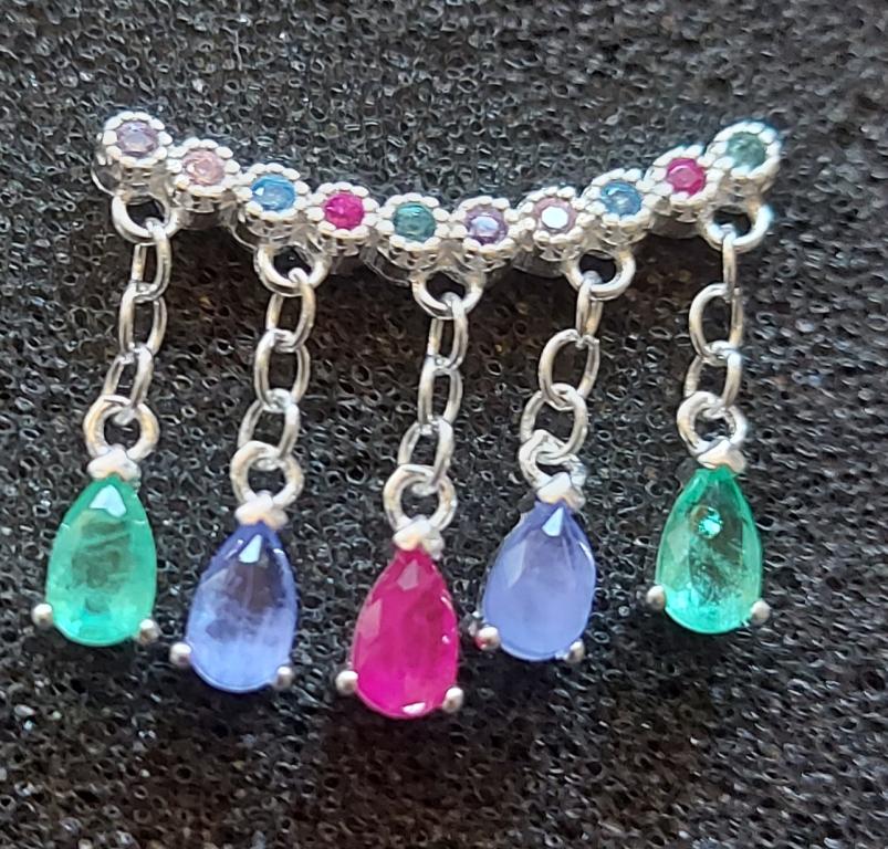 Brinco ear cuff com corrente elo e gotas coloridas, tarraxa